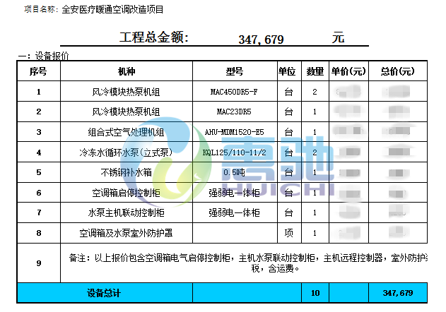 項目配置:麥克維爾風冷模塊熱泵機組  組合式空氣處理機組  美的中央空調Si系列機組