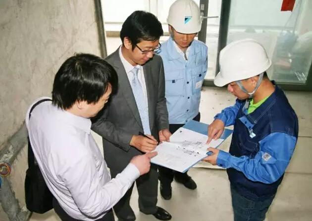 工事溝通現(xiàn)場:家用中央空調的安裝事先需要用戶、內裝公司及PROSHOP安裝團隊充分溝通。