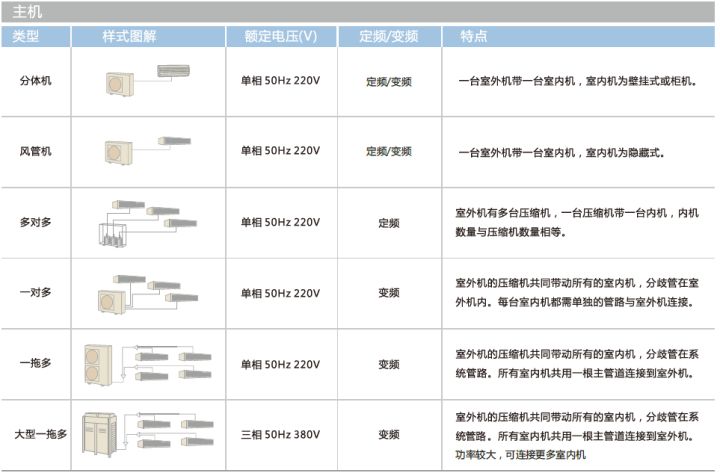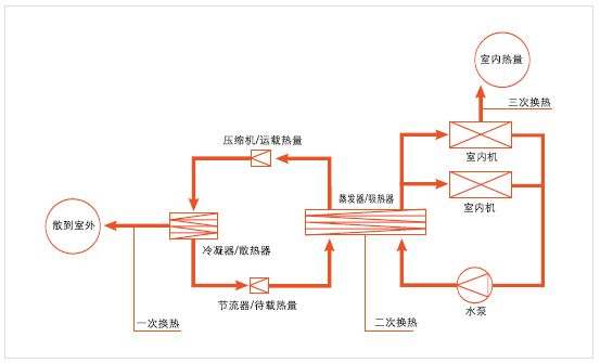 室外機(jī)通過(guò)冷媒管與多臺(tái)室內(nèi)機(jī)連接,每個(gè)房間的內(nèi)機(jī)均直接與空氣換熱。