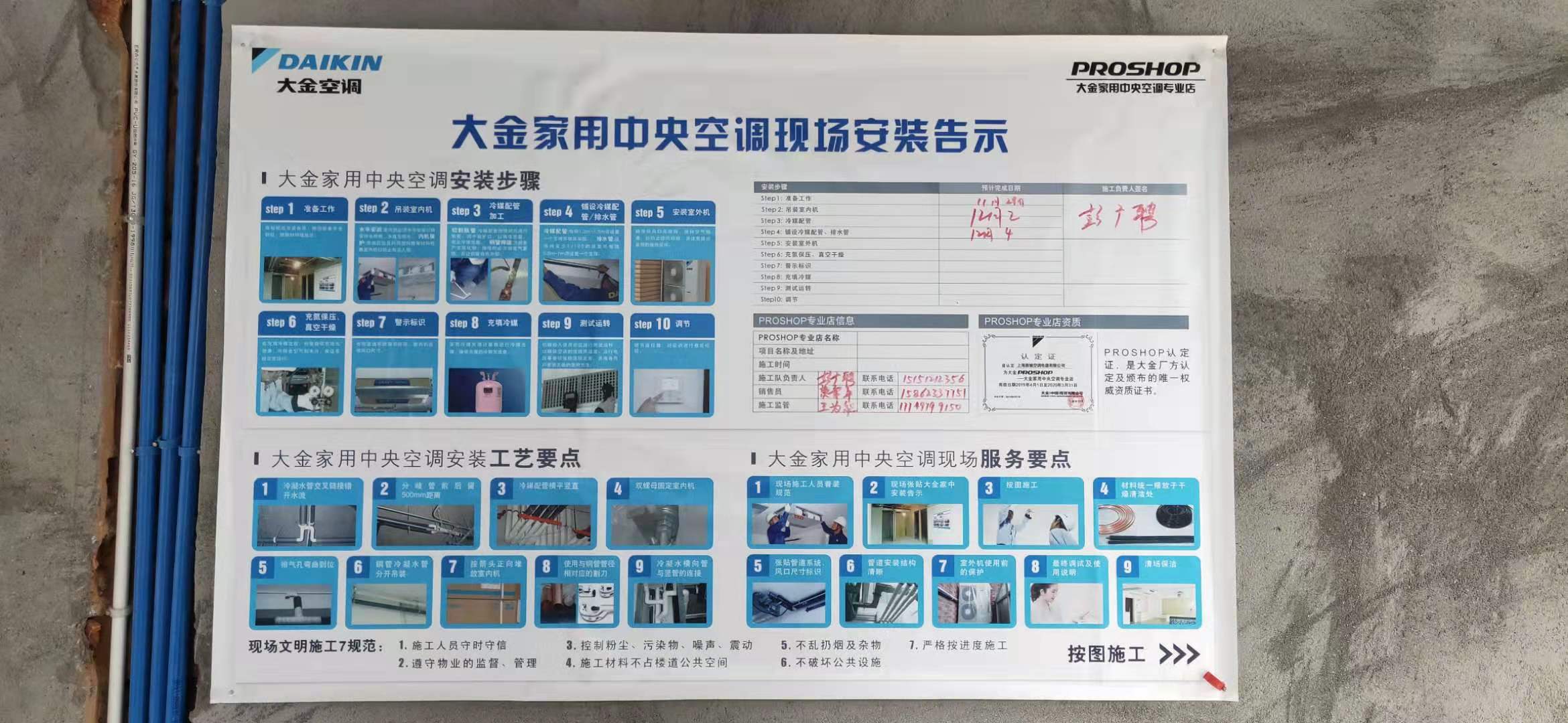 (3)貼上標識貼:留有公司客服人員電話,萬一裝修公司工人在施工中有問題,需要聯系中央空調施工,可以直接方便聯系。